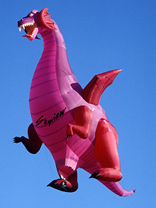 Entre estos globos había dos con formas especiales muy notables, el Dinosaurio Dino y Monster Truck.